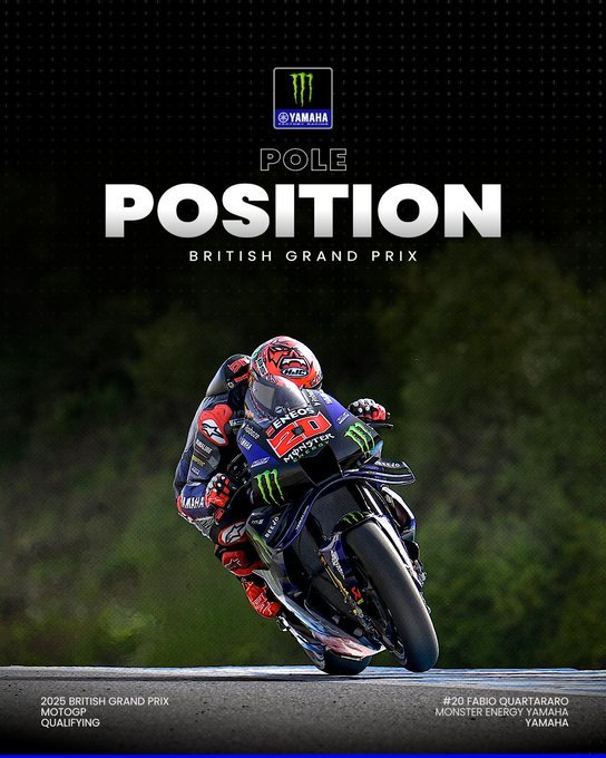Pilotul francez Fabio Quartararo (Yahama) va pleca din pole position la Grand Prix-ul Marii Britanii la MotoGP de la Silverstone.